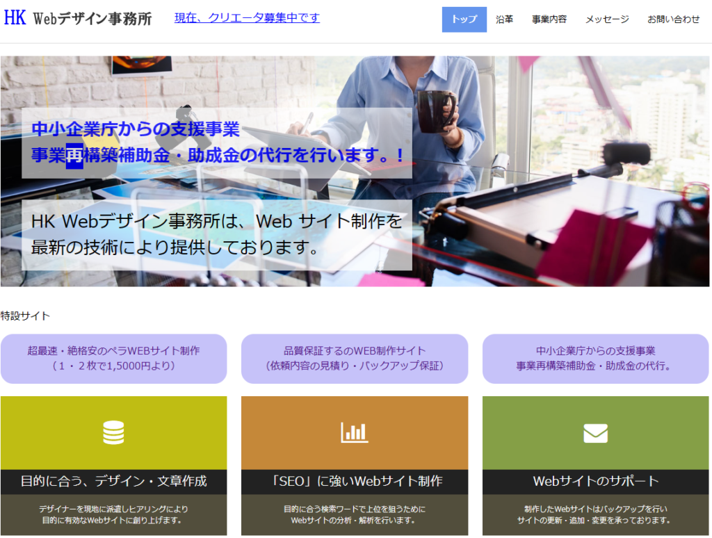 こちらは、HKwebデザイン事務所のメインサイトです。